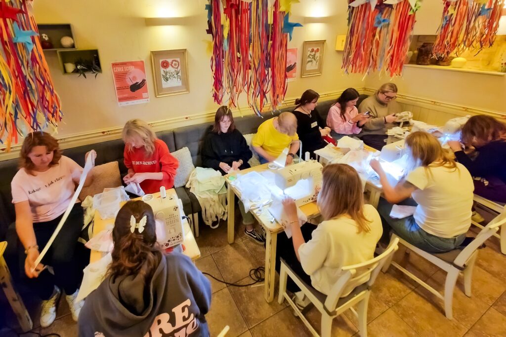Drugi, praktyczny etap inicjatywy, zaangażował społeczność w bezpośrednie działanie na rzecz pacjentek. Wspólne szycie dla kobiet po operacjach onkologicznych odbyło się 6 września 2025 r. w kawiarni Umberto Cafe&Ristorante.  W wydarzeniu wzięło udział 30 osób, które wspólnie uszyły imponującą liczbę 300 woreczków drenażowych. Woreczki te zostały następnie przekazane pacjentkom Oddziału Chirurgii Onkologicznej Uniwersyteckiego Szpitala Klinicznego w Poznaniu. Inicjatywa spełniła swój podwójny cel: zapewniła praktyczną pomoc i stworzyła przestrzeń, w której każdy mógł się włączyć w działanie na rzecz osób w trudnej sytuacji zdrowotnej, budując empatię i wzmacniając poczucie wspólnoty.