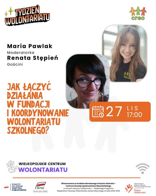 Już w czwartek, 27 listopada, w godz. 17:00–19:00 zapraszamy na spotkanie online poświęcone niezwykłej codzienności osób, które łączą pracę w organizacjach społecznych z koordynowaniem szkolnych zespołów wolontariackich.
